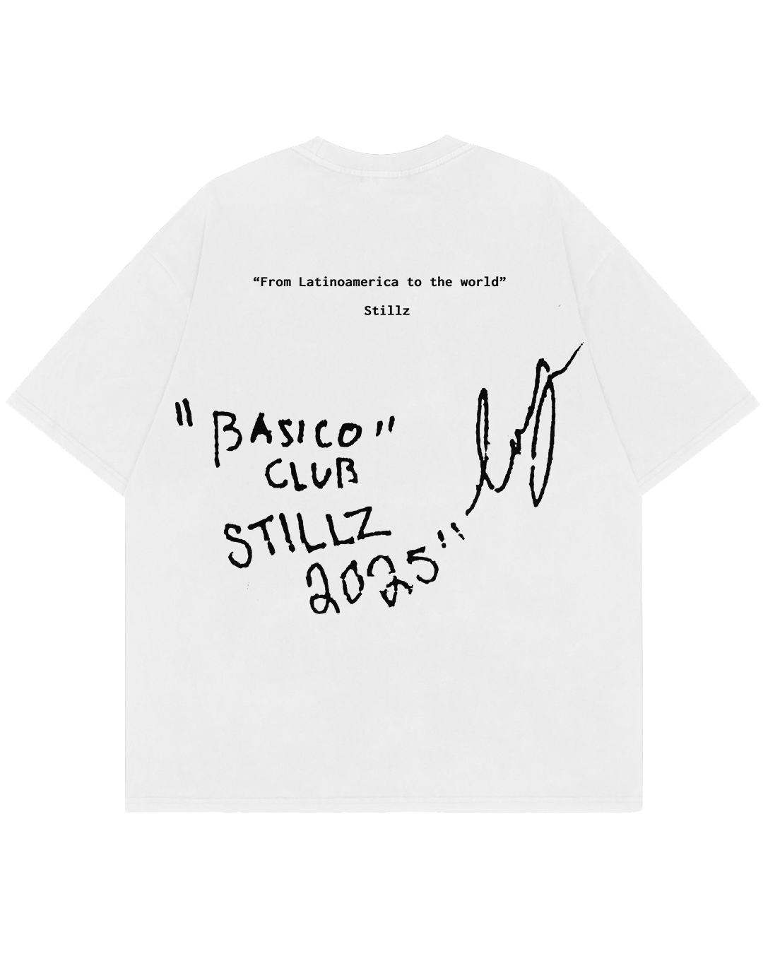 El gráfico frontal captura el momento como un recuerdo convertido en prenda, mientras que en la espalda “From Latinoamerica to the world” y “BASICO CLUB STILLZ 2025” sellan la idea que le da sentido a todo: origen, visión y ambición sin límites. Una camiseta que no solo documenta un instante, sino una forma de ver hasta dónde puede llegar lo nuestro.