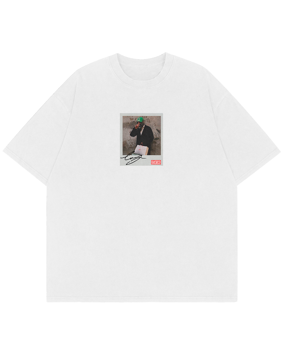 Franela blanca creada para inmortalizar el encuentro entre BASICO y Stillz, director creativo detrás de algunos de los visuales más grandes de la música latina. Más que una colaboración, esta pieza nace de una conexión real: la empatía de reconocer en otro latino la capacidad de construir cosas gigantes y entender que nosotros también venimos de ese mismo impulso.